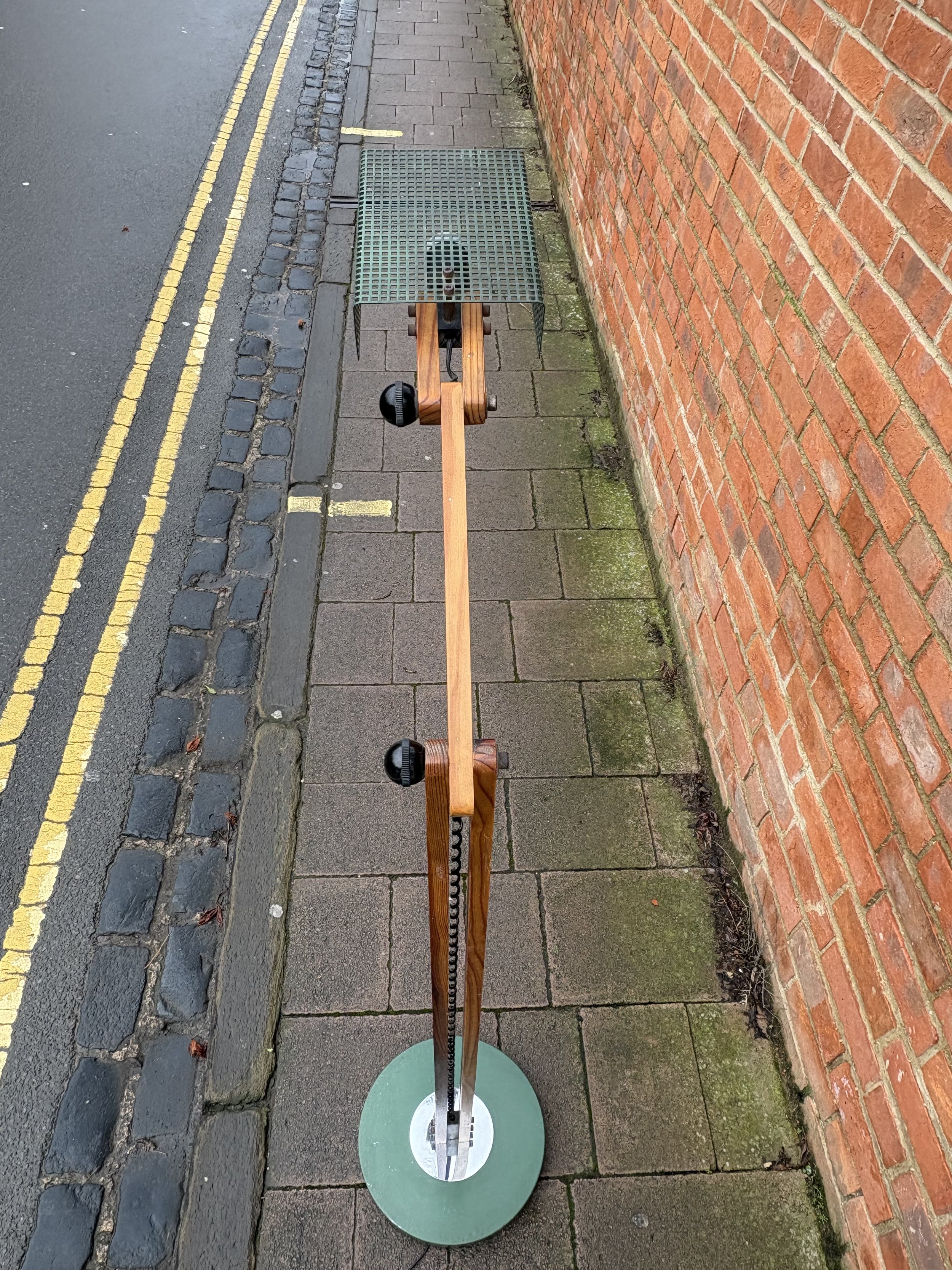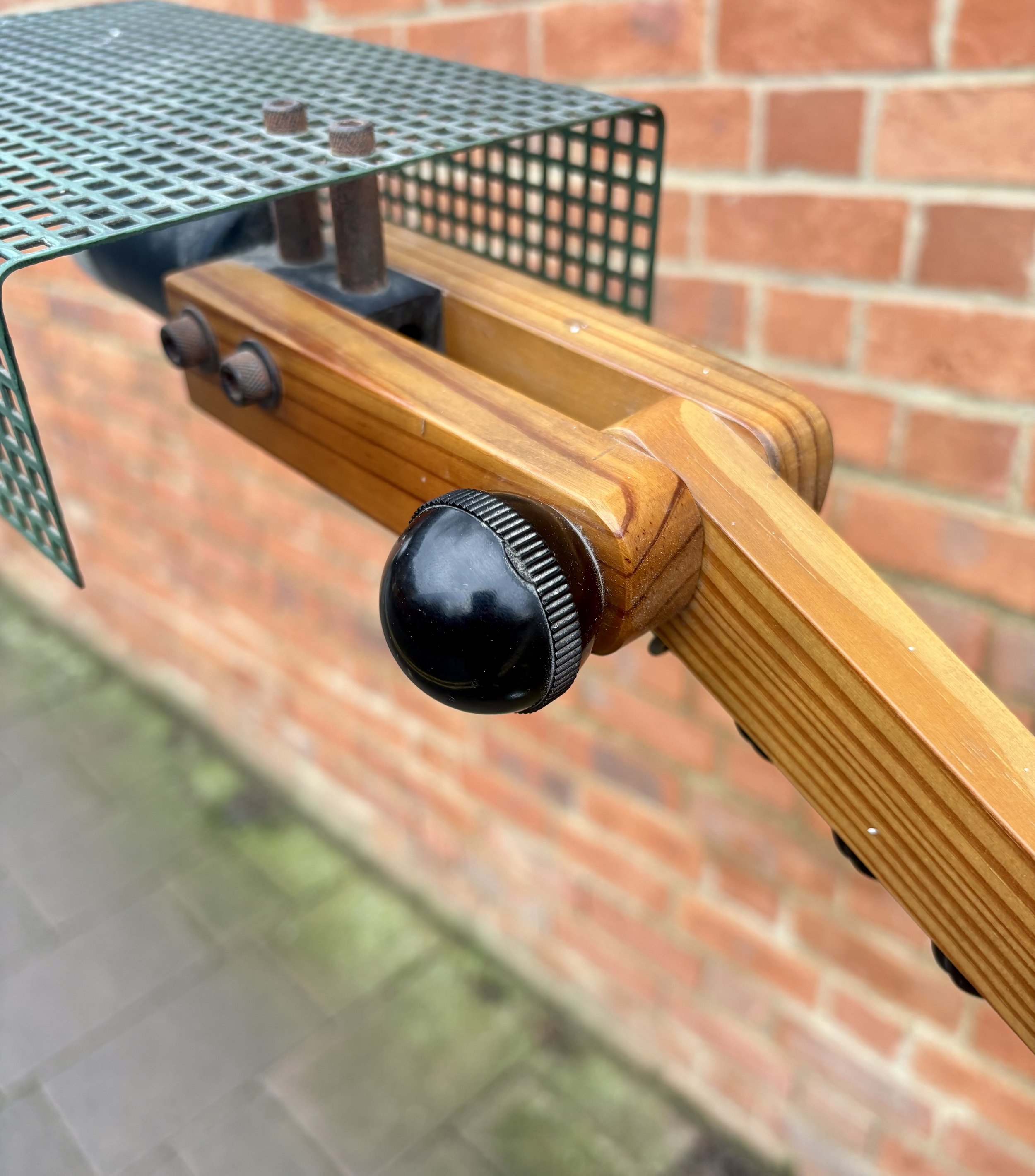 Mid 20th Century French , Articulated, Pine and perforated Metal floor lamp. 140 cm high x 72 cm wide x31 cm deep £950