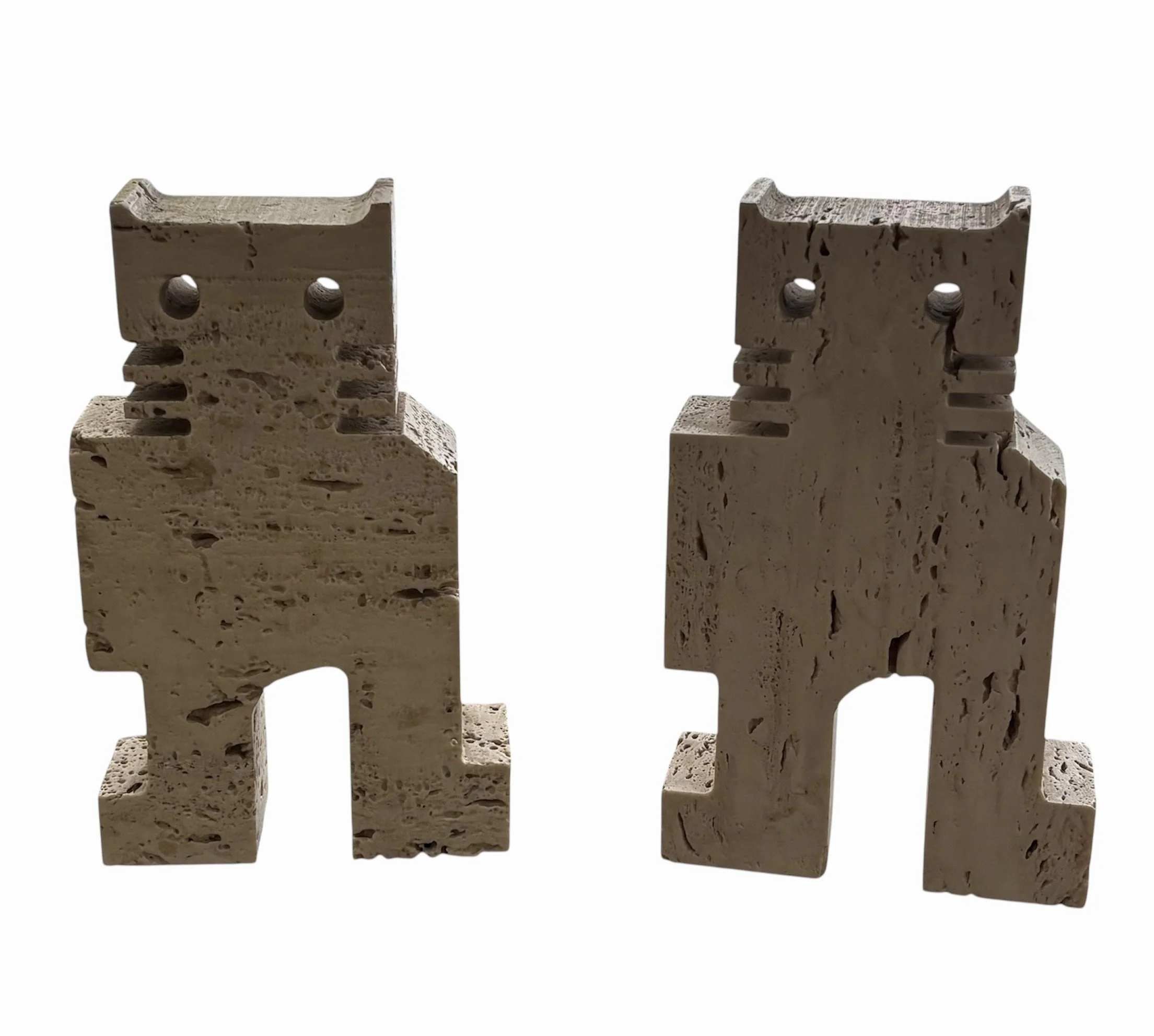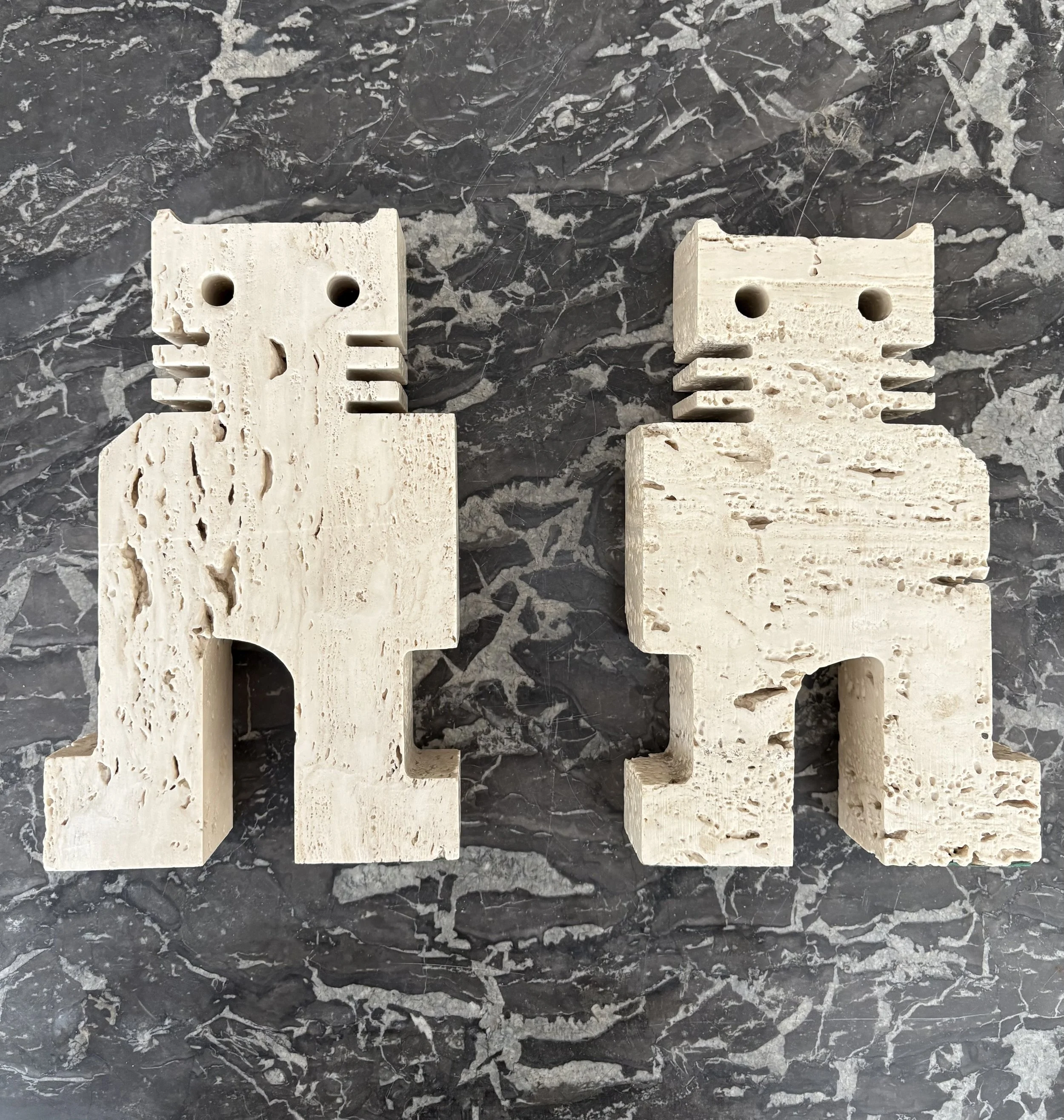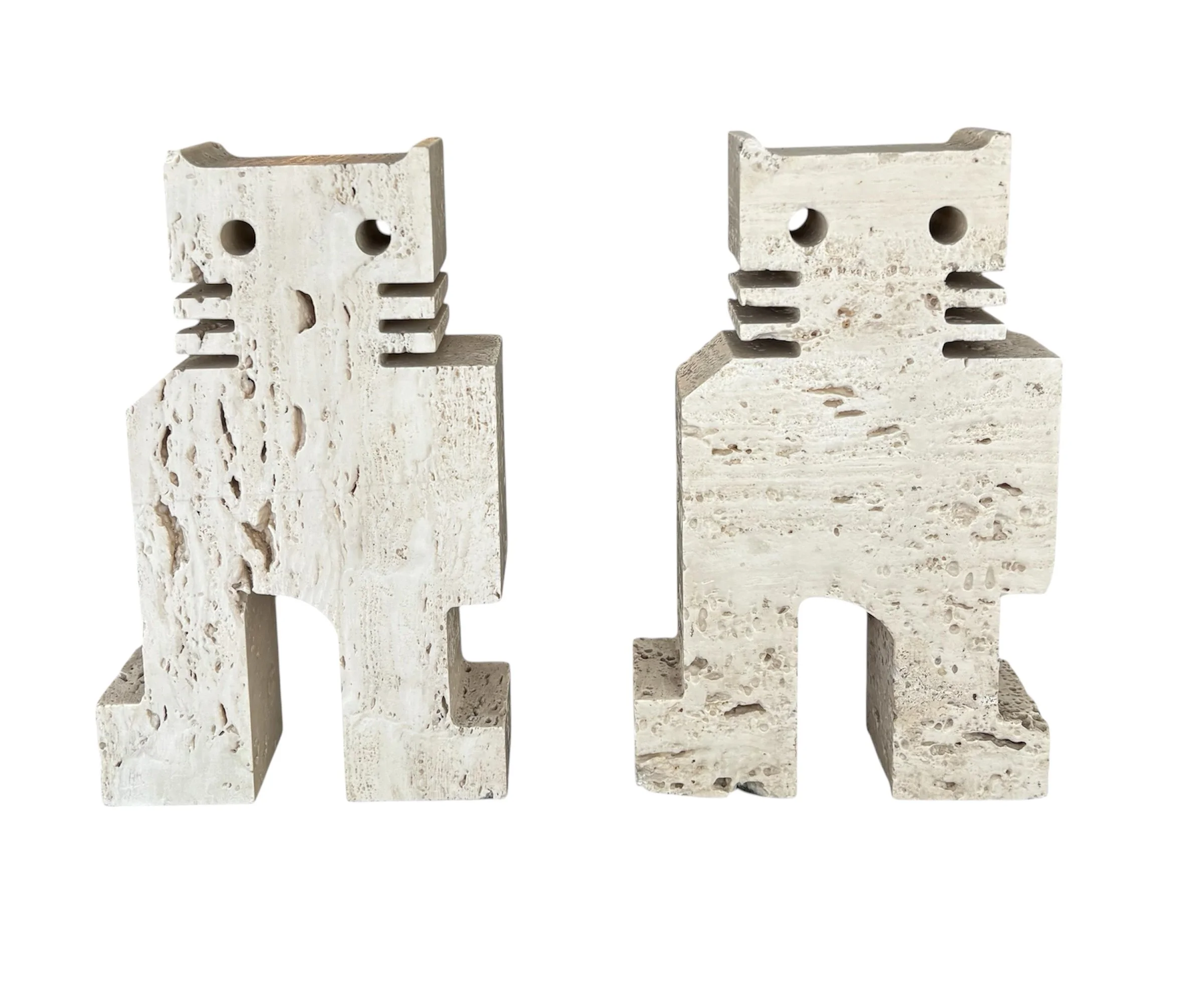 Fratelli Mannelli designed travertine Sculptural Bookend Cats for Marble Art, Italy 1970s. Each 23cm high 14cm wide 5cm deep . £850