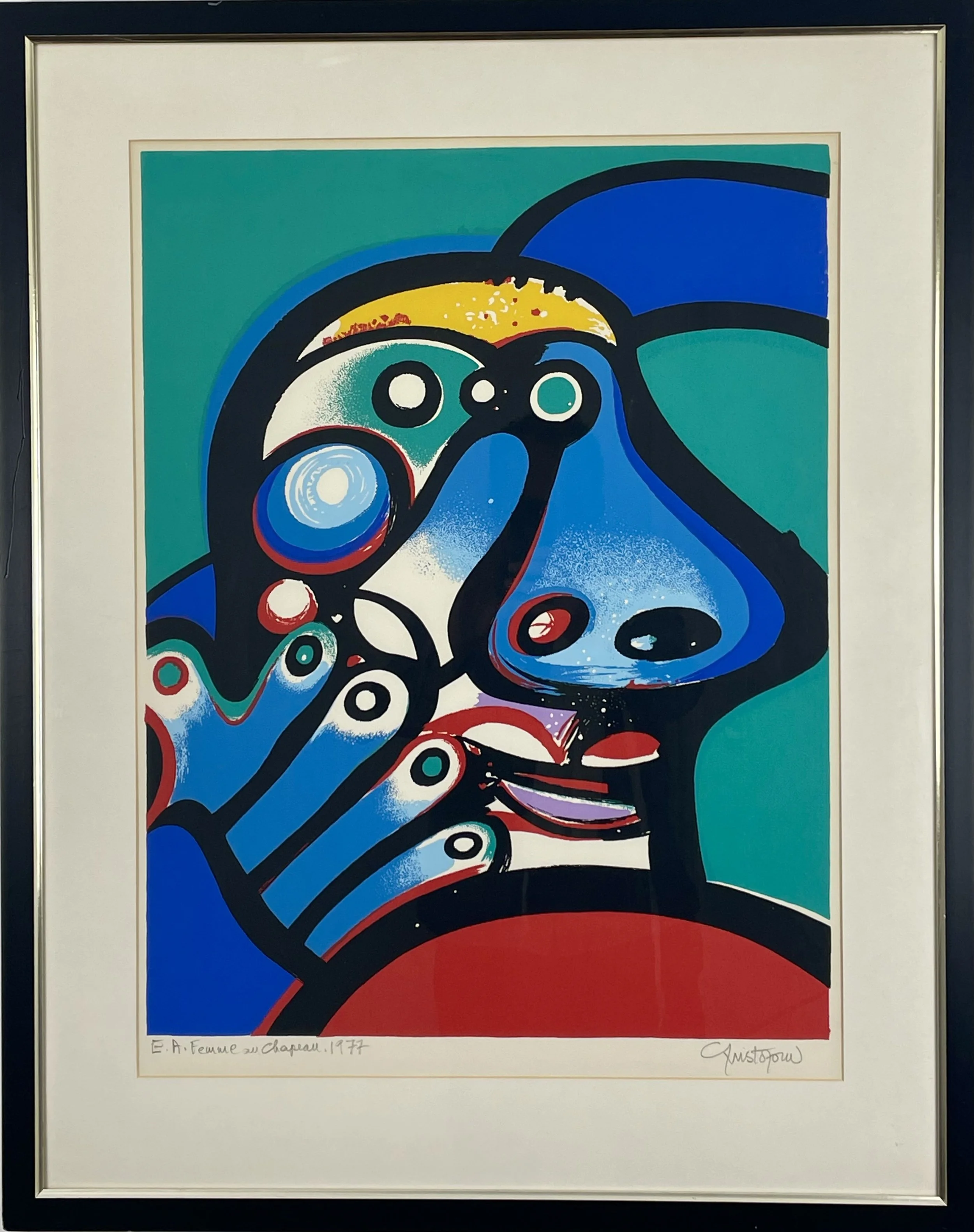 Greek/British, Femme au Capeau, 1977, signed and inscribed in pencil, 89cm high x 71cm wide (frame) £450