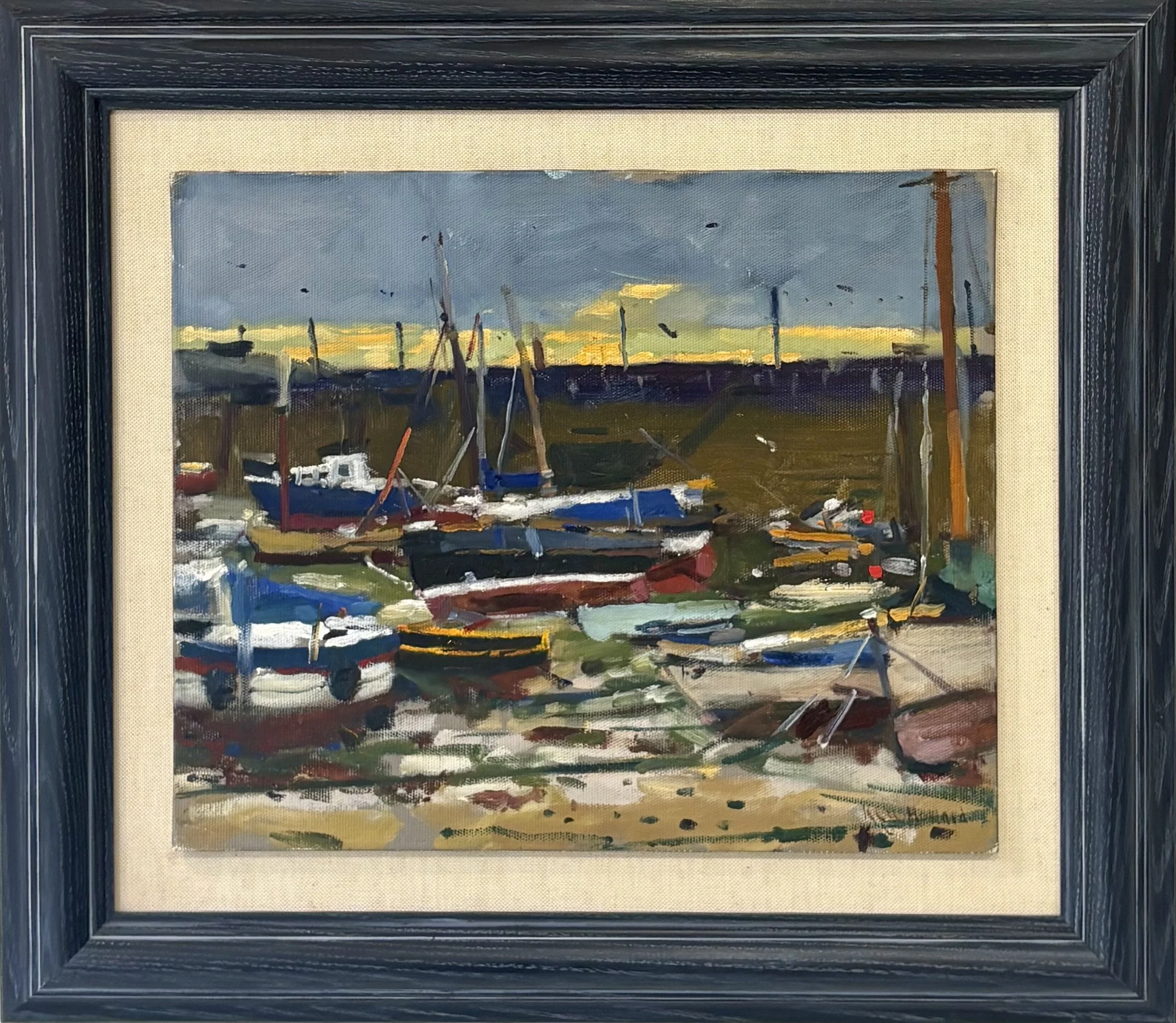 Ken Howard OBE RA (1932-2022) Oil on board, Mousehole at Low Tide c 1990. 25 cm x 30 cm, Frame size 43 cm x 39cm £3500