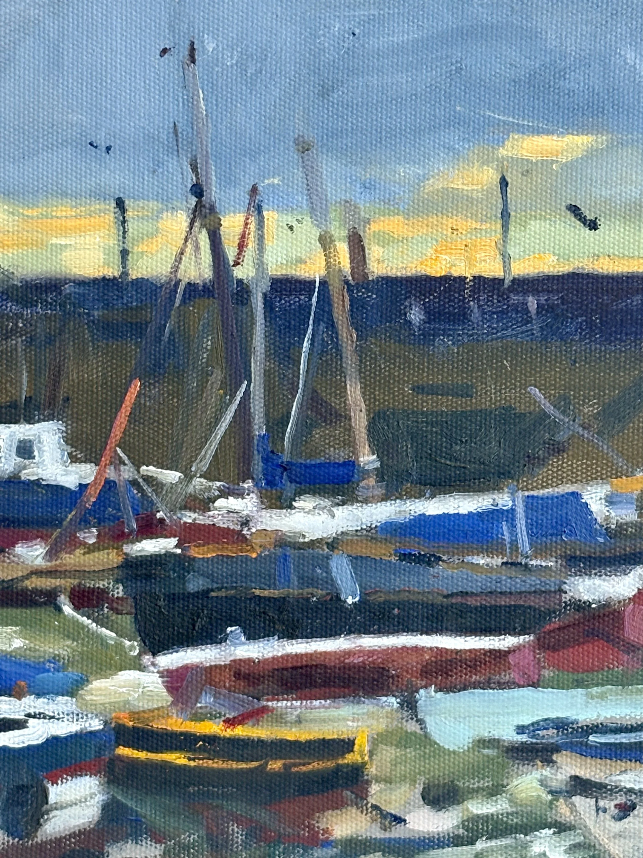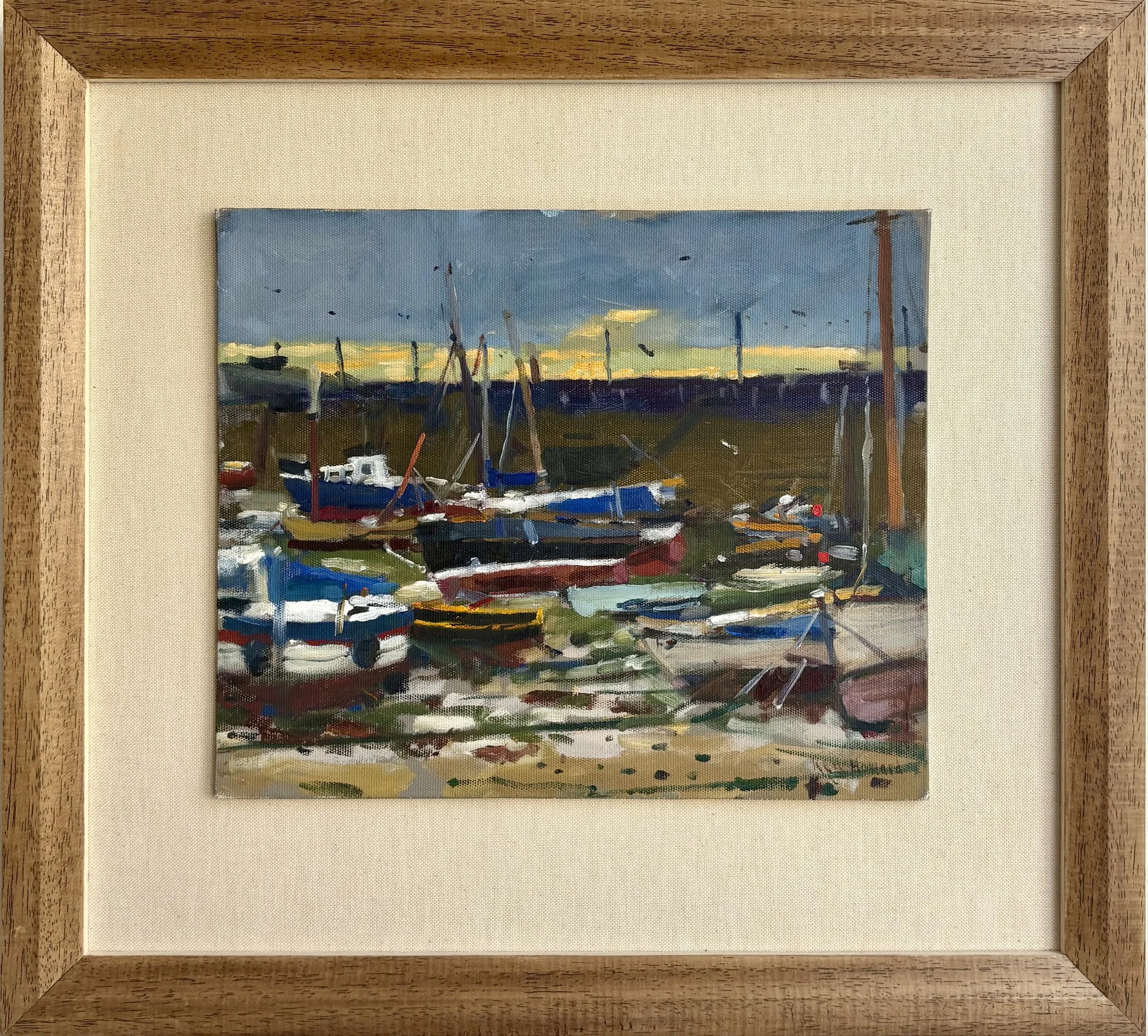 Ken Howard OBE RA (1932-2022) Oil on board, Mousehole at Low Tide c 1990. 25 cm x 30 cm, Frame size 48 cm x 44cm