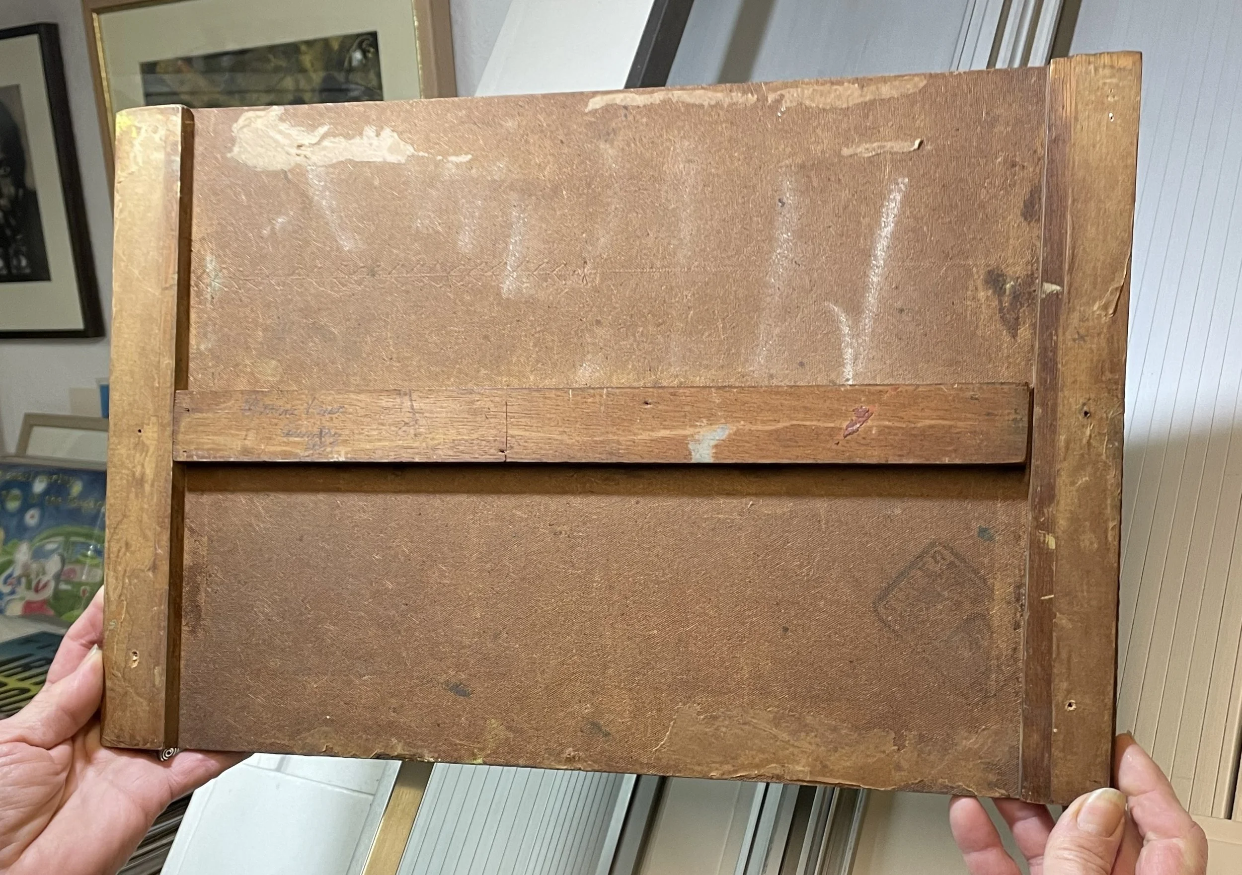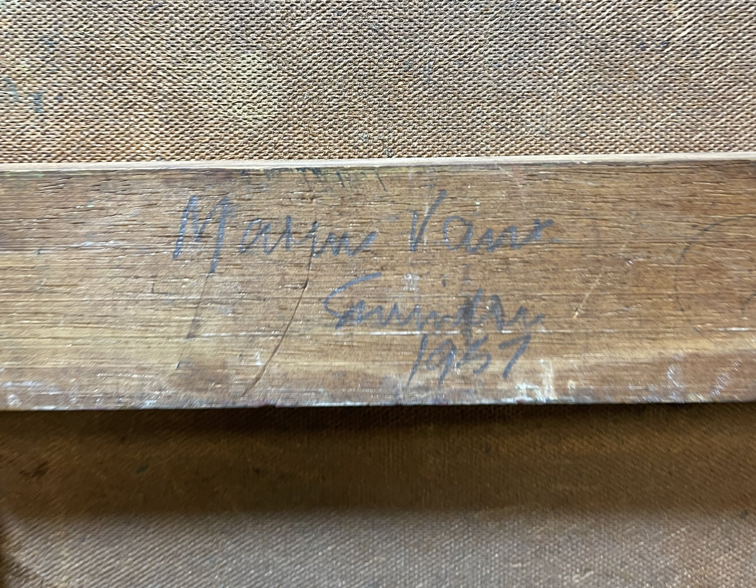 This painting is an early work and was given to the vendor by Marc Vaux’s wife . It explores Vuax’s early fascination and love of colour. Using a minimal palette Vaux extracts so much information from what he’s seeing putting it down on board in the most effervescent and exquisite manner