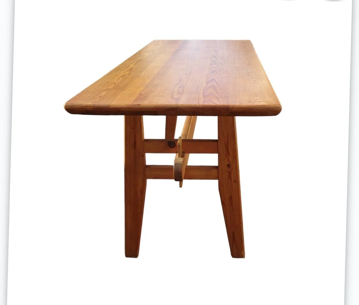 A mid 20th Century pitched pine table of pegged construction in the style of Charlotte Perriand, 160cm x 67cm x 72cm. £900